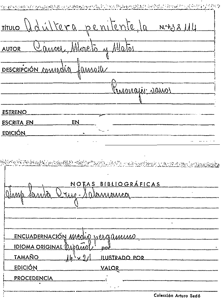 La Adúltera penitente / Cancer, Moreto, Matos by
