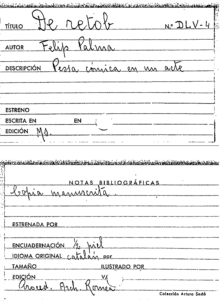 De retob [Manuscrit] / Felip Palma by