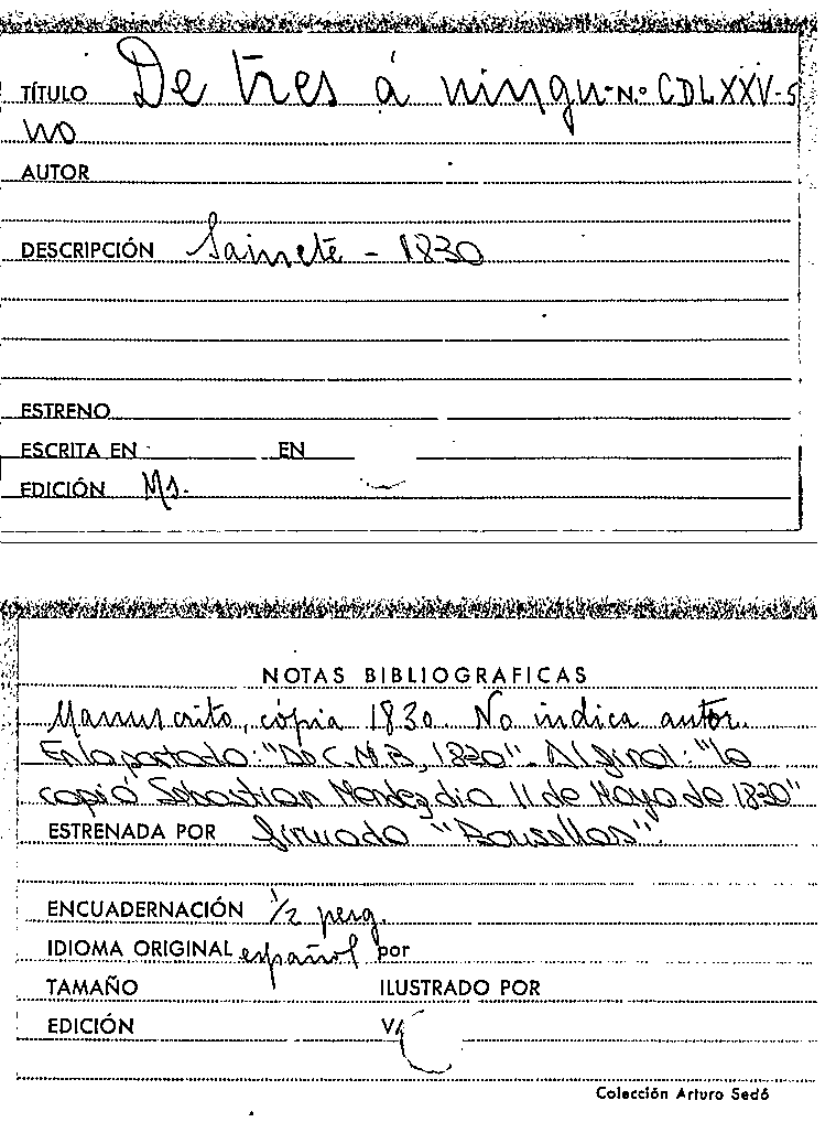 De tres a ninguno [Manuscrit]