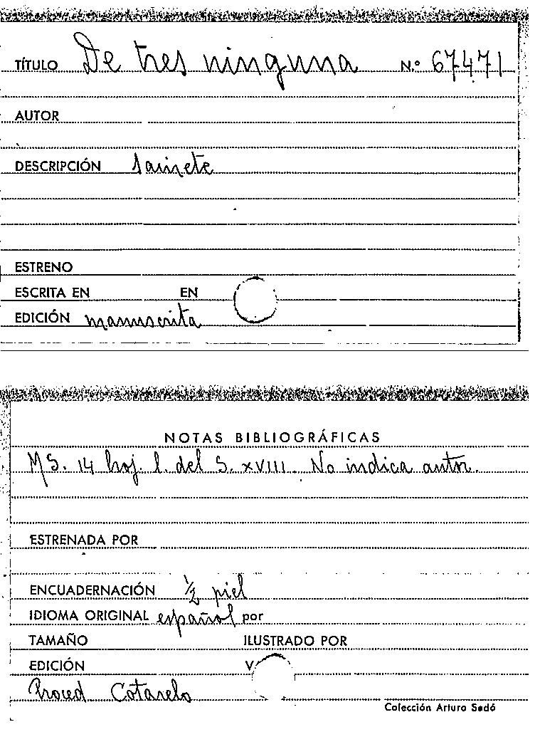 De tres ninguna [Manuscrit]