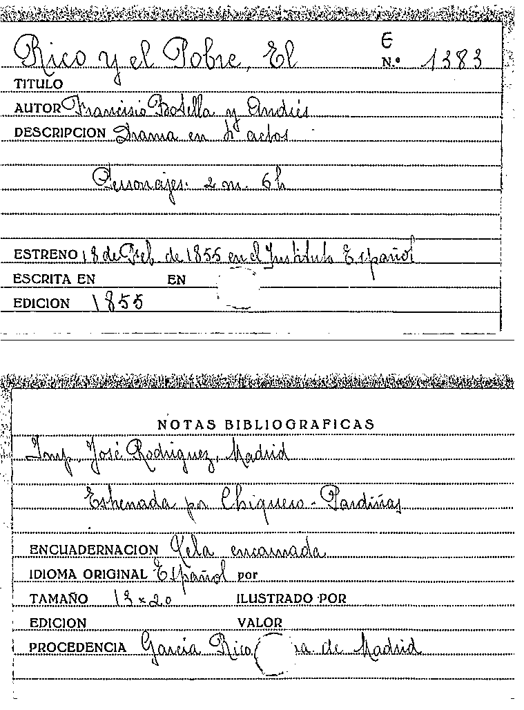 El rico y el pobre : drama en cuatro actos / original de Francisco Botella y Andrés by