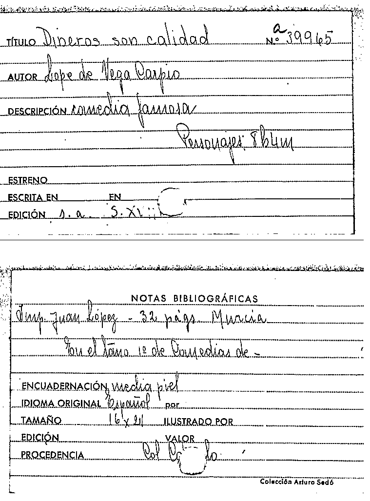 Dineros son calidad / Lope de Vega by