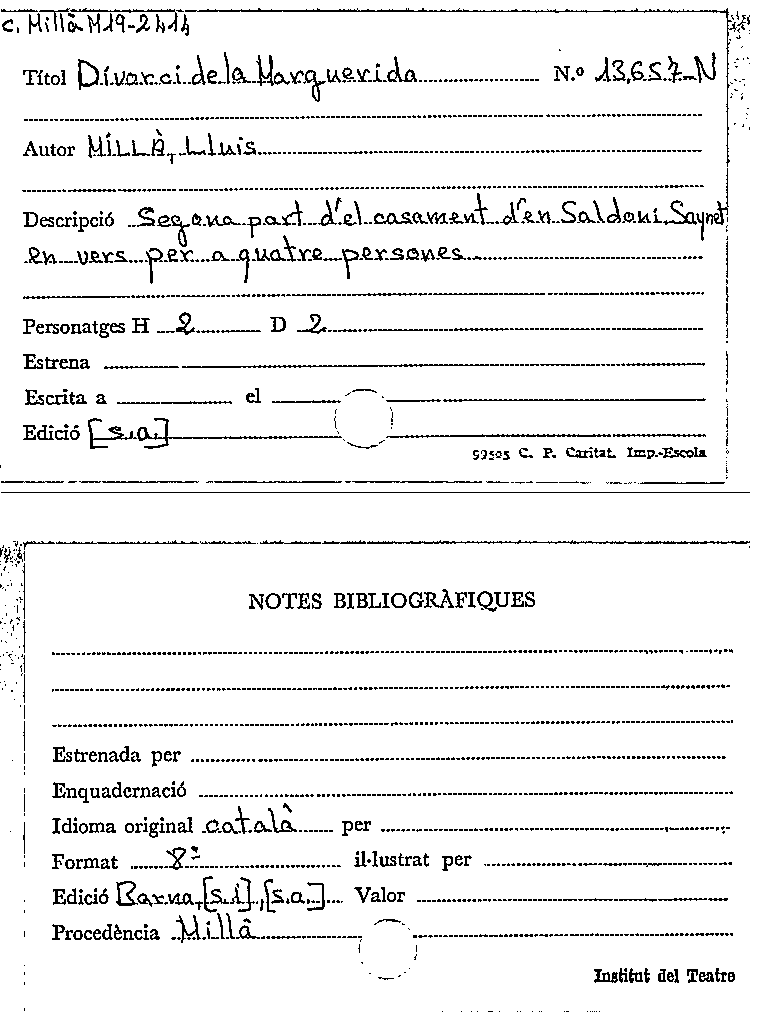 Divorci de la Marguerida / Lluís Millà by Series: Colecció Millá. Saynets vells ab versos nous ; 5