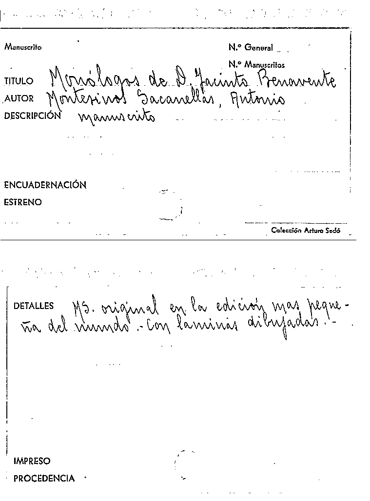 Monólogos [Manuscrit] / Jacinto Benavente by