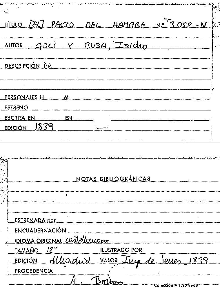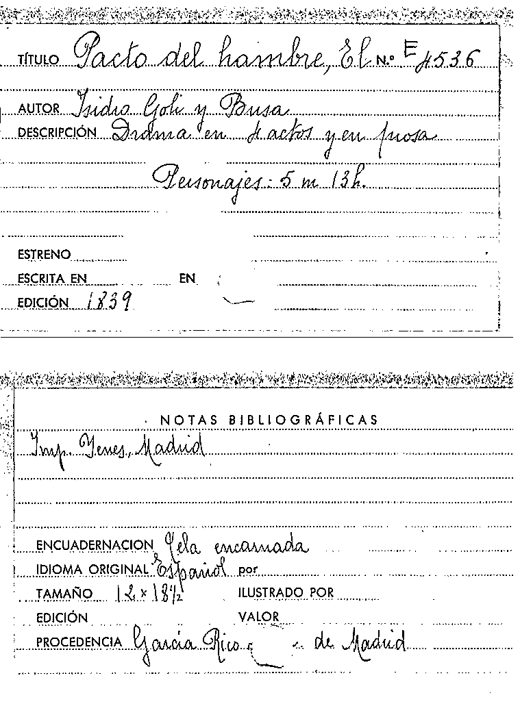 El pacto del hambre : drama en cuatro actos y en prosa / arreglado al teatro español por Isidro Goli y Busa by