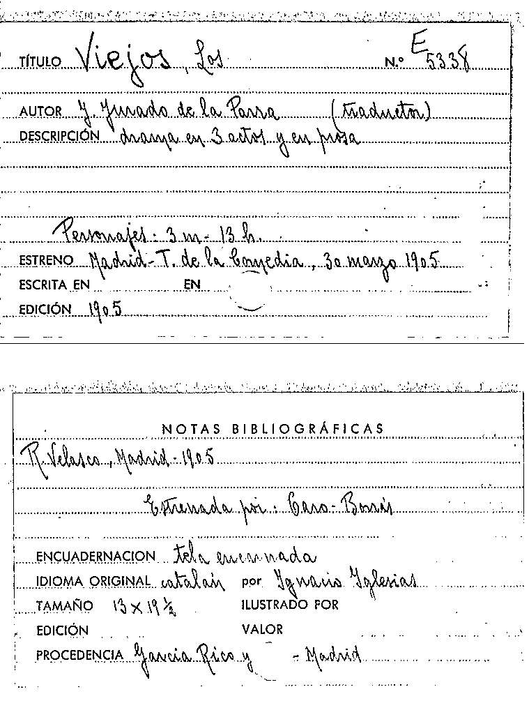 Los viejos : drama en tres actos y en prosa / escrito en catalán por Ignacio Iglesias y adaptado al castellano por J. Jurado de la Parra by