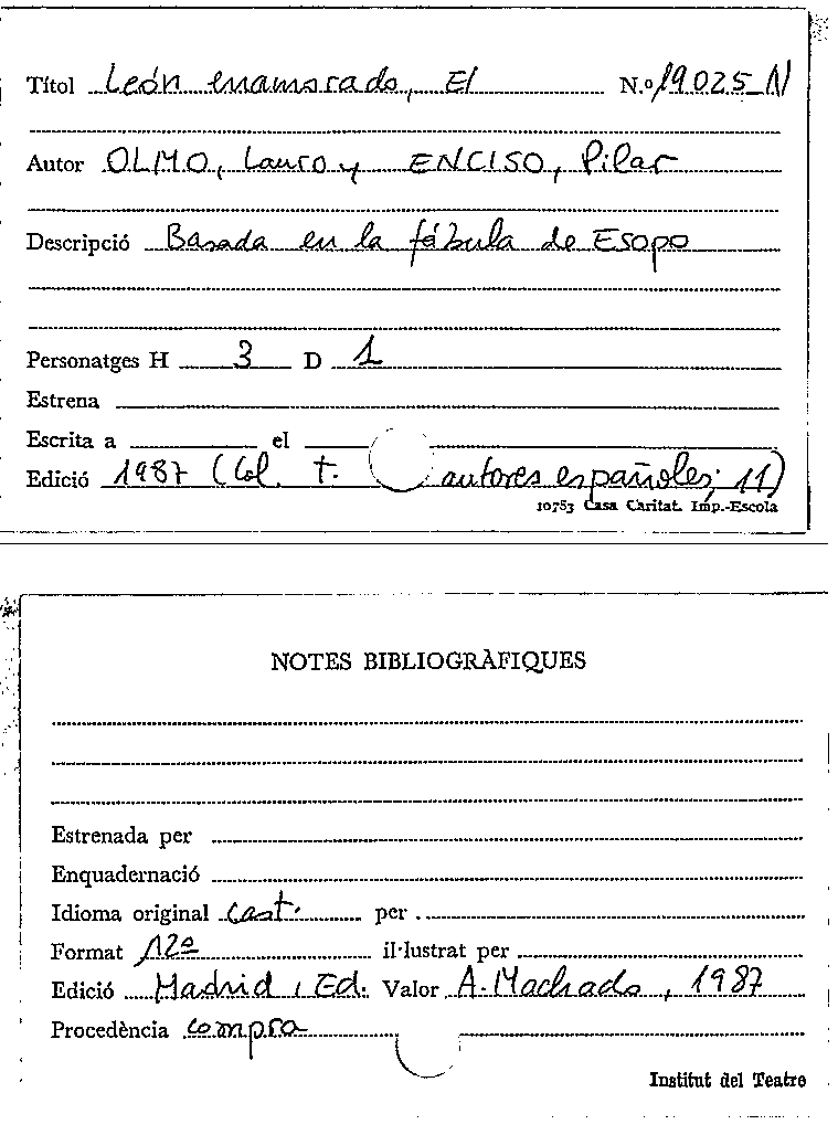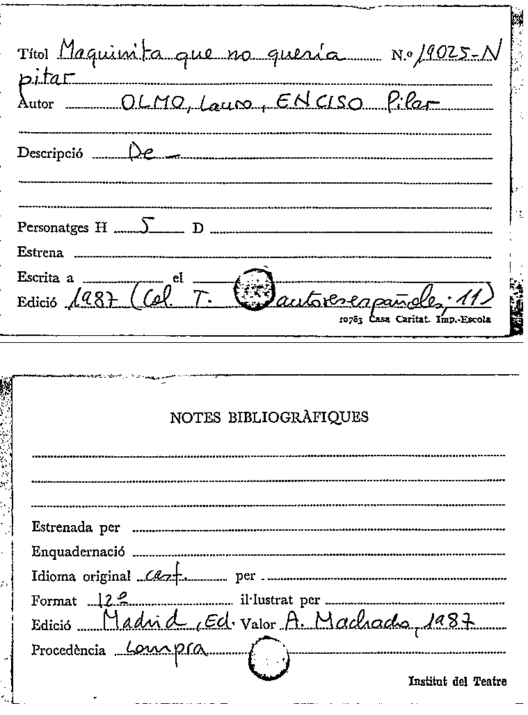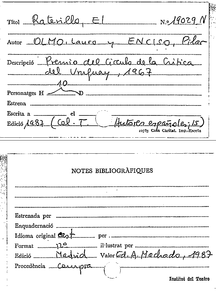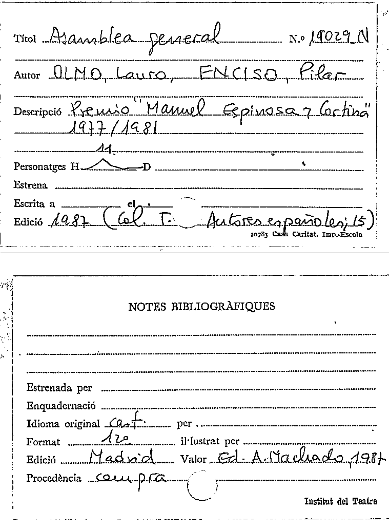 Publication details: [Madrid] : Comunidad de Madrid. Conserjería de las artes : Asociación cultural de autores de teatro, 2003