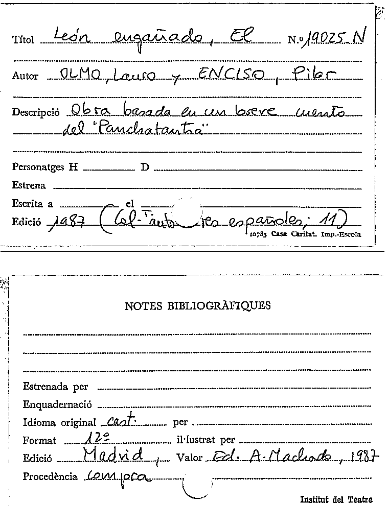 Publication details: [Madrid] : Comunidad de Madrid. Consejería de educación y cultura : Asociación de autores de teatro, DL 1999