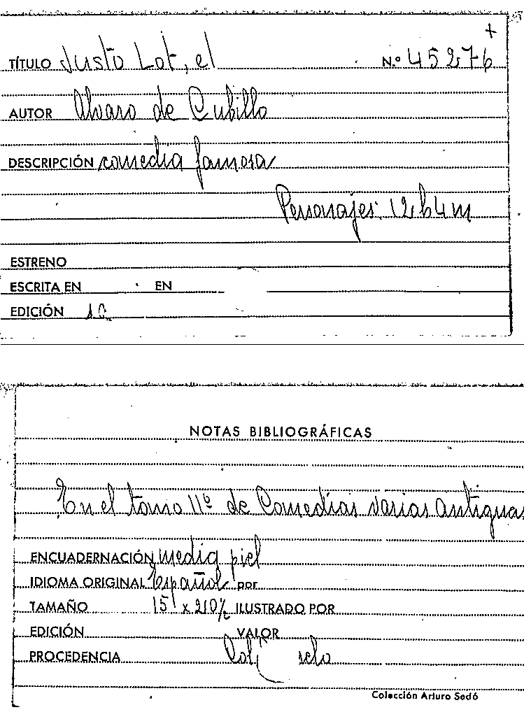 Comedia famosa. El justo Lot. / de don Alvaro Cubillo by