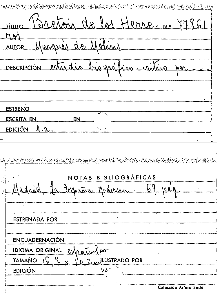 Bretón de los Herreros / Mariano Roca de Togores y Carrasco, Marqués de Molins by