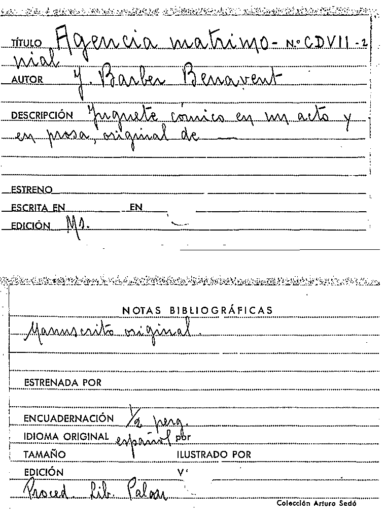 Agencia matrimonial [Manuscrit] / J. Barber Beavent por
