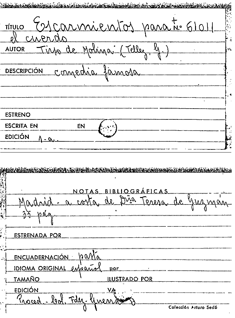 Escarmientos para el cuerdo / Tirso de Molina by