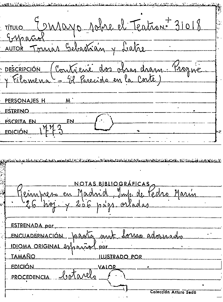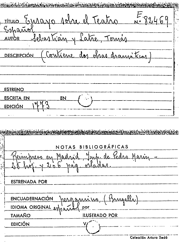 Ensayo sobre el teatro español / por D. Tomas Sebastian y Latre ... by