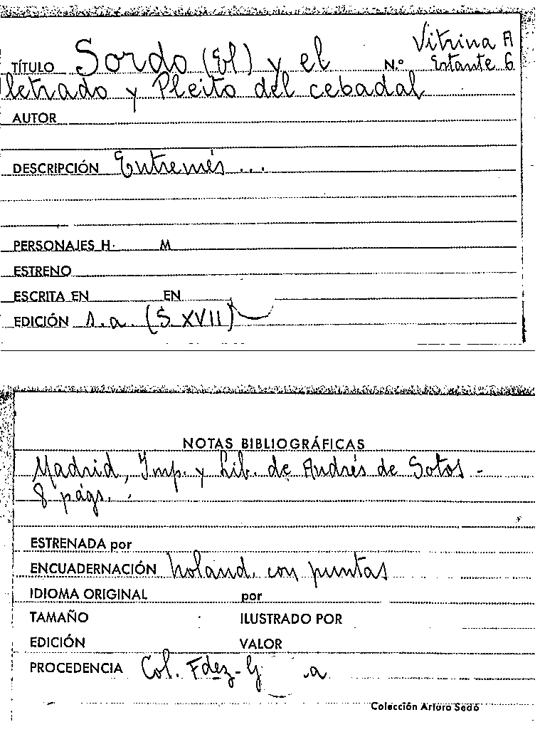 Entremes: El sordo, y el letrado, y pleyto del Cebadal by