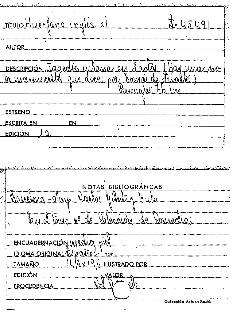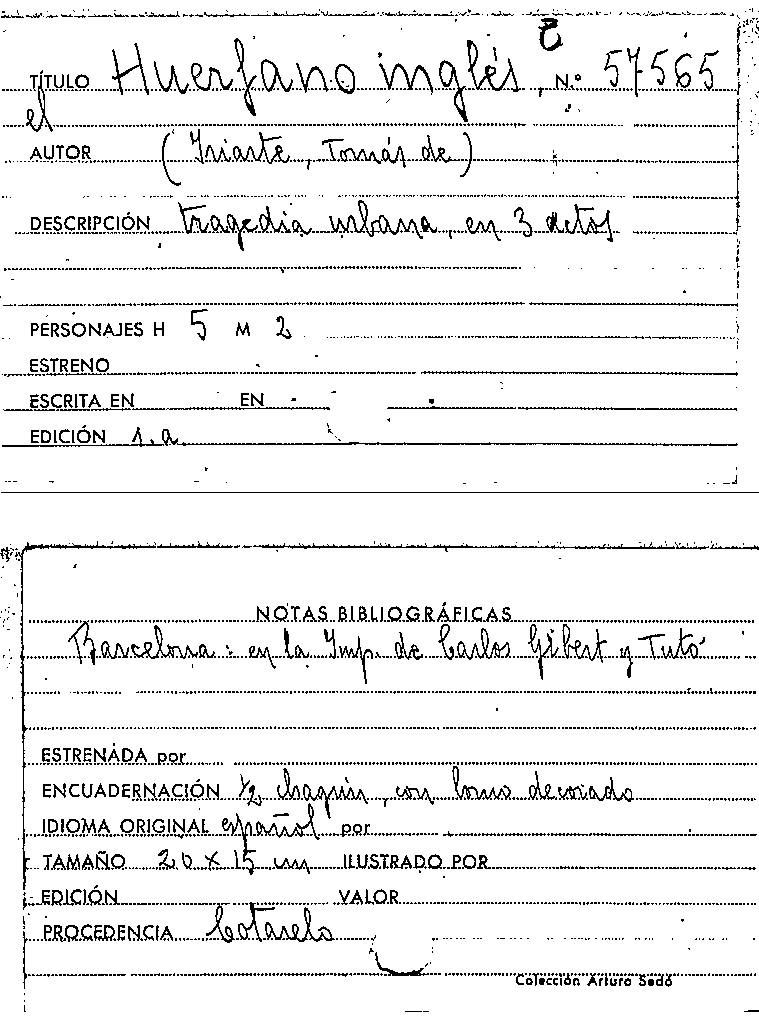 El Huerfano inglés / Tomás de Iriarte by