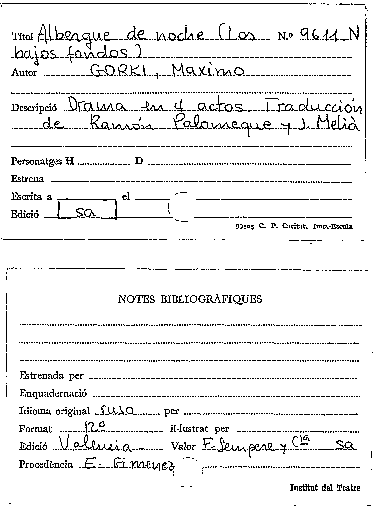 Albergue de noche, Los Bajos fondos / Maksim Gor'kij by