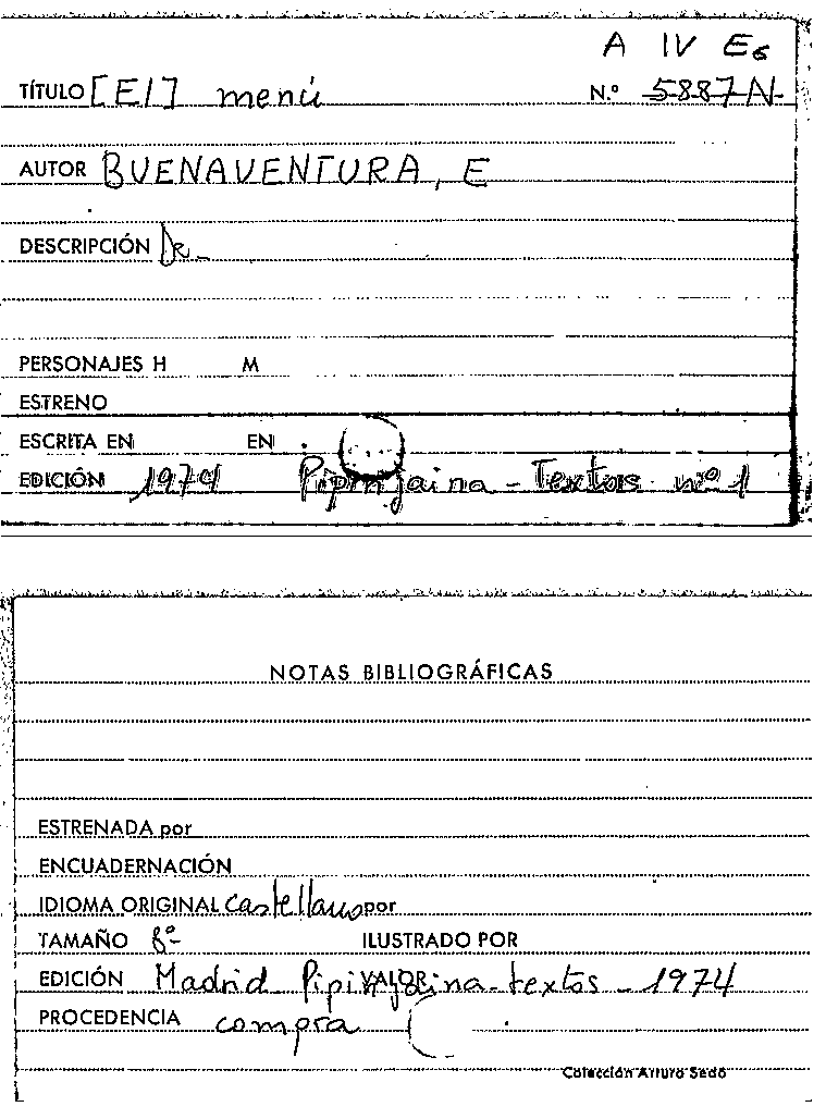 Publication details: Madrid : Centro Dramático Nacional. Departamento de Dramaturgia : INAEM, D.L.1991