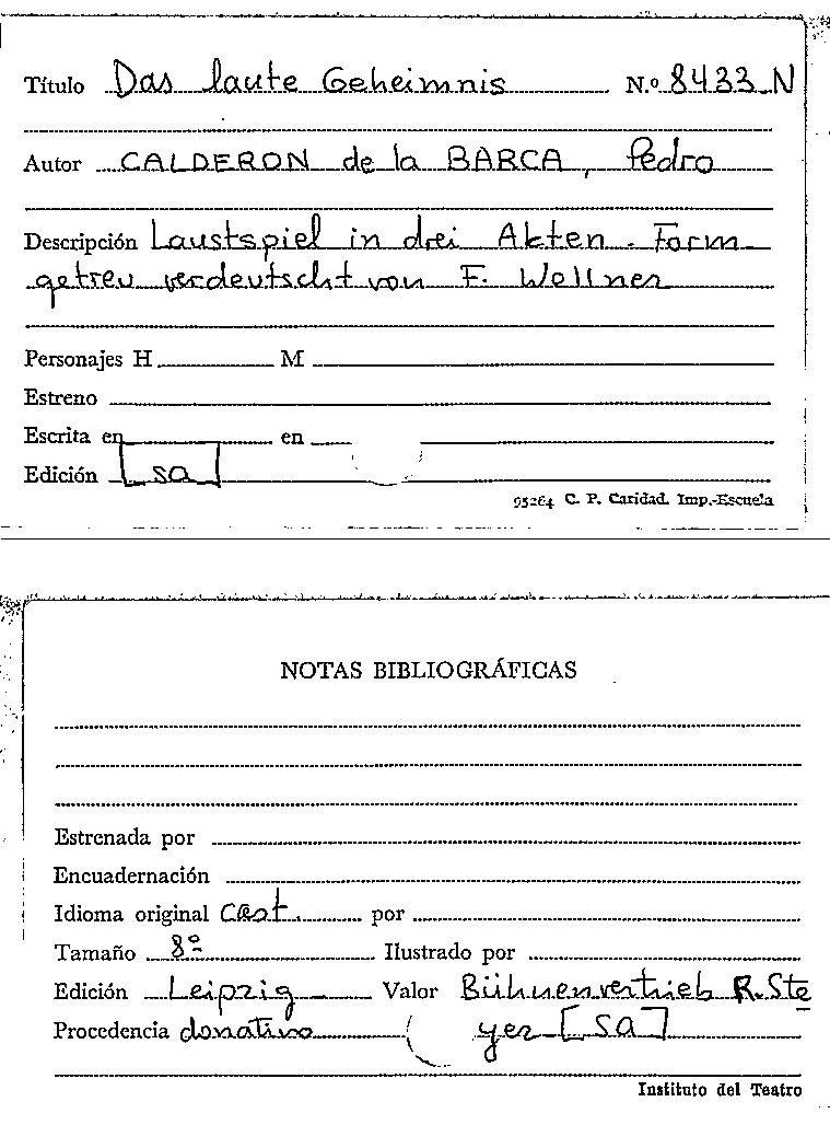 Das Laute Geheimnis / Pedro Calderón de la Barca by