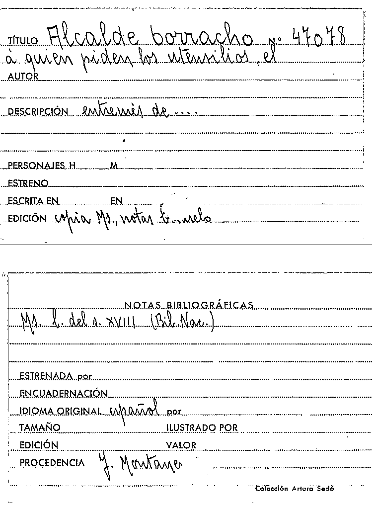 El Alcalde borracho a quien piden los utensilios [Manuscrit] / Anónimo by