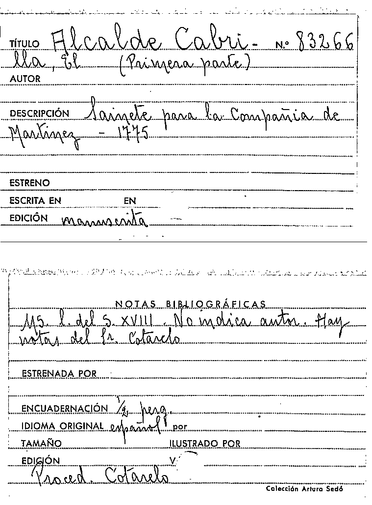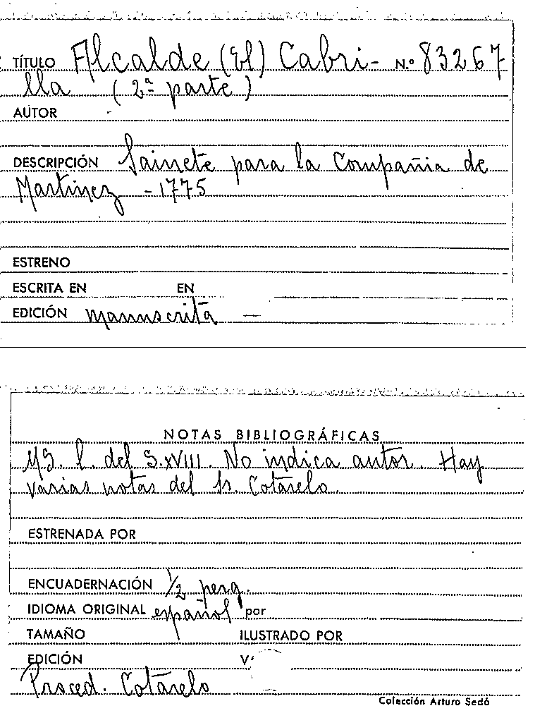El Alcalde Cabrilla (primera parte) [Manuscrit] / Anónimo by