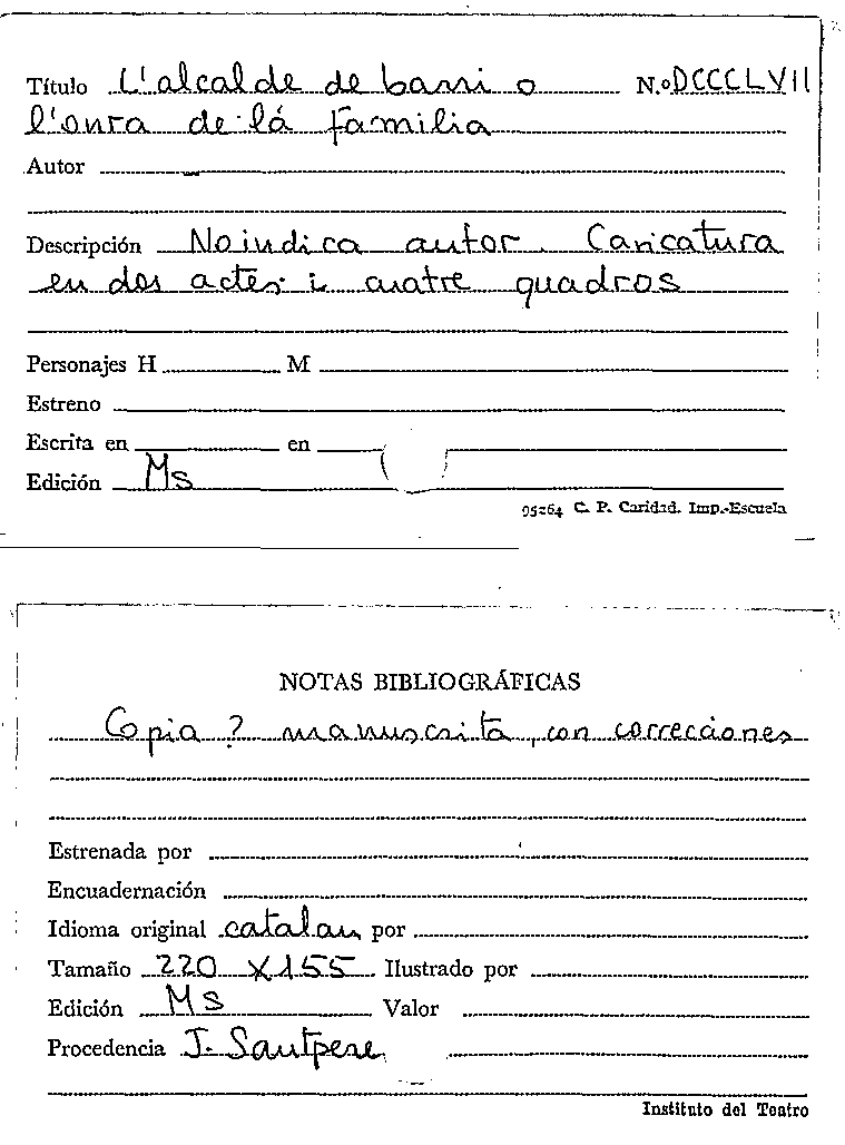 L'Alcalde de barri a l'onra de la familia [Manuscrit]