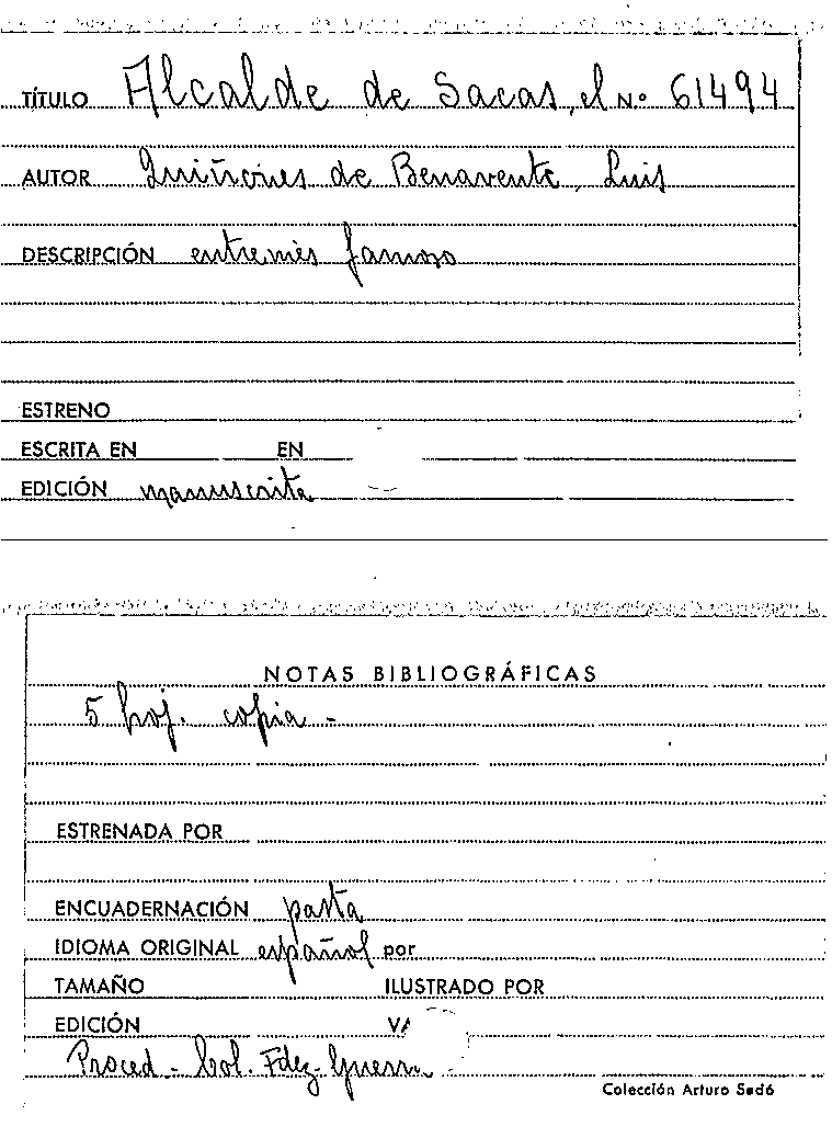 El Alcalde de Sacas [Manuscrit] / Luis Quiñones de Benavente by