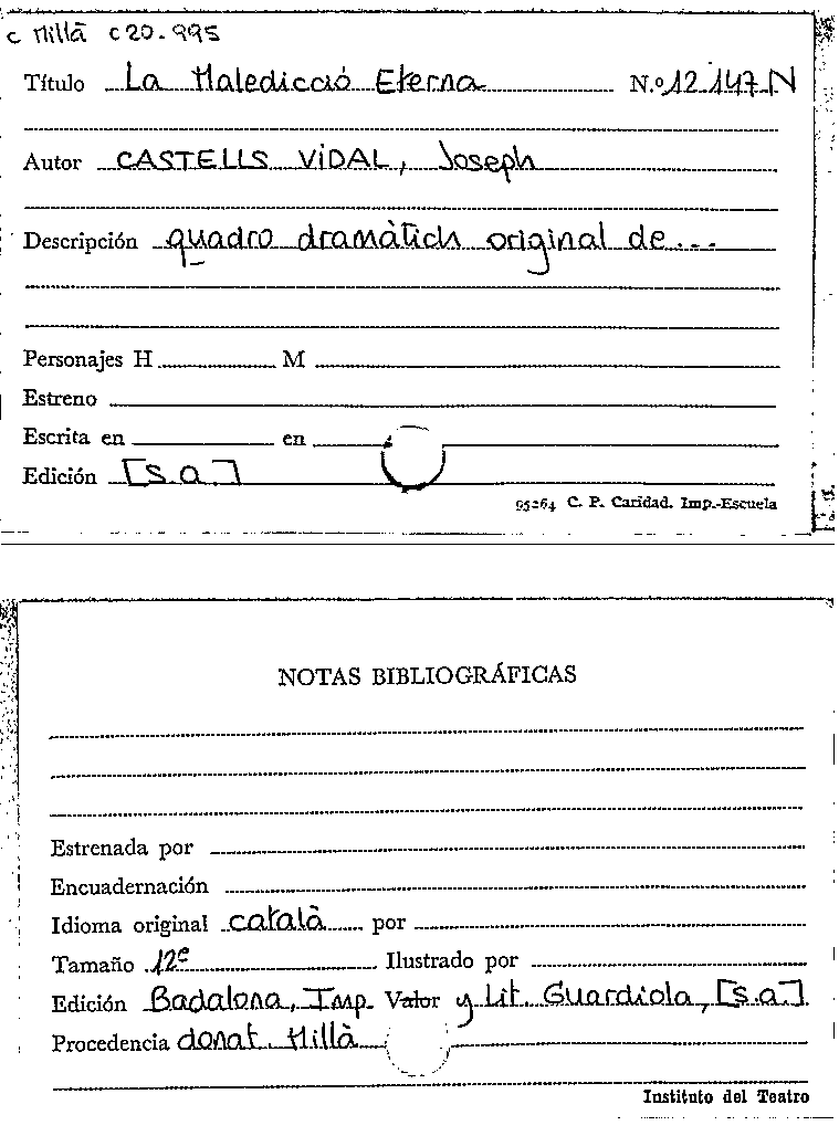 Publication details: Badalona : Imp. y Lit. Guardiola, [s.a.]