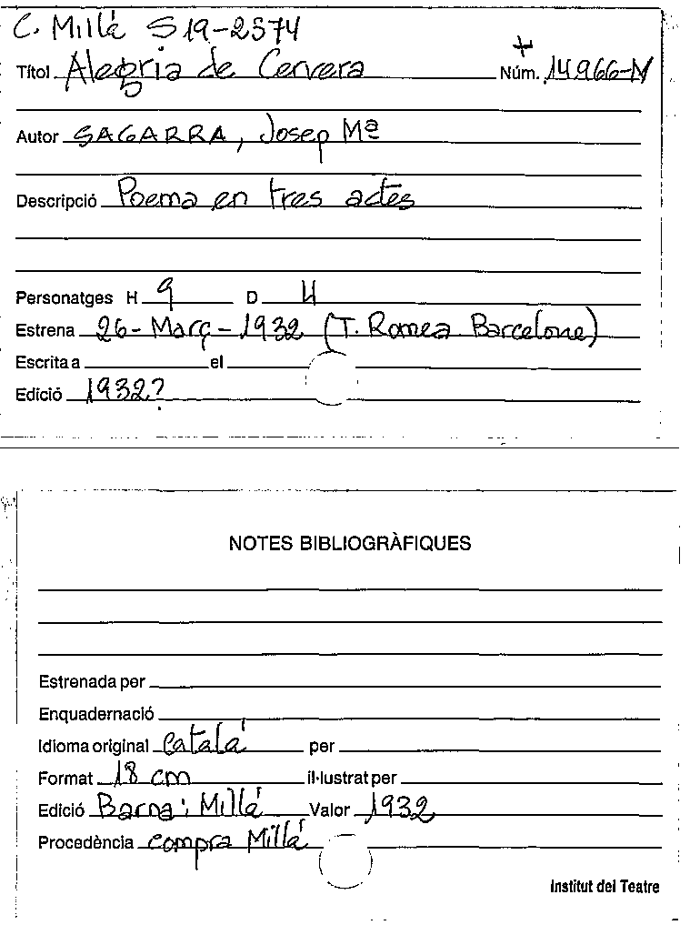 Publication details: Barcelona : Imp. Llibreria Millà, `[s.a.]