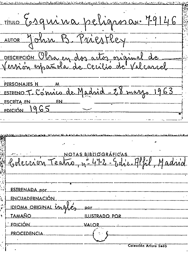 Esquina peligrosa / John B. Priestley ; versión española de Cecilio de Valcarcel by Series: Colección teatro (1951) ; 472