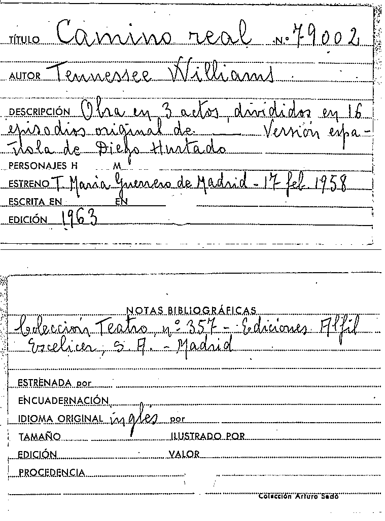 Camino real / original de Tennessee Williams ; versión española de Diego Hurtado by Series: Colección teatro (1951) ; 357