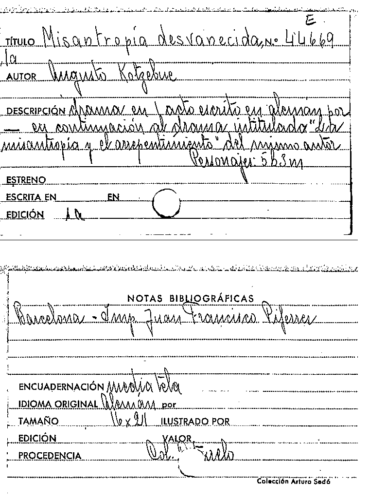 La Misantropía desvanecida / August von Kotzebne by