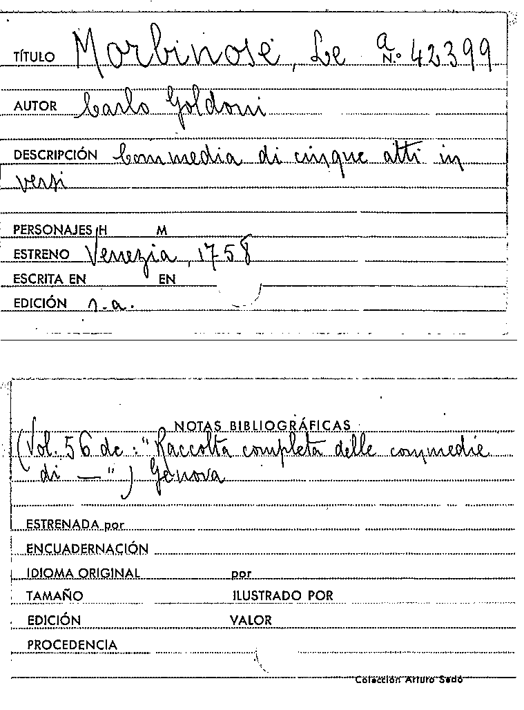 Le Morbinose / Carlo Goldoni by