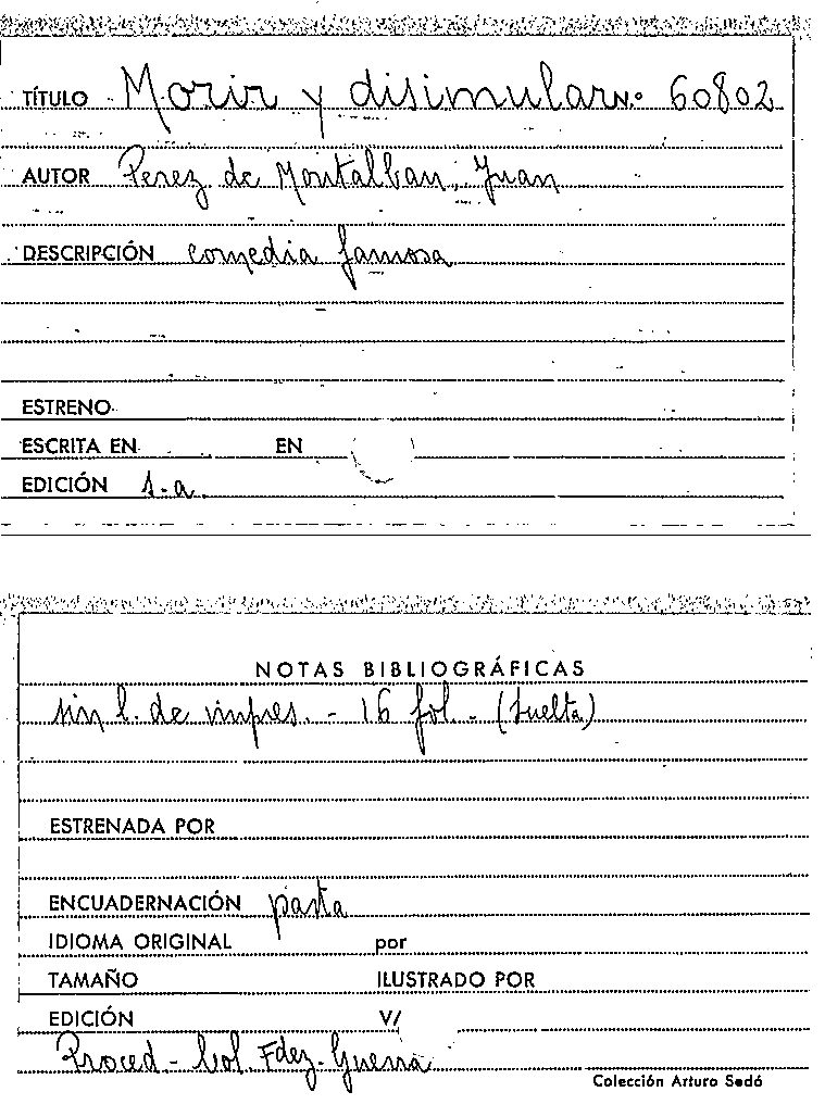 Morir y disimular / Juan Pérez de Montalbán by