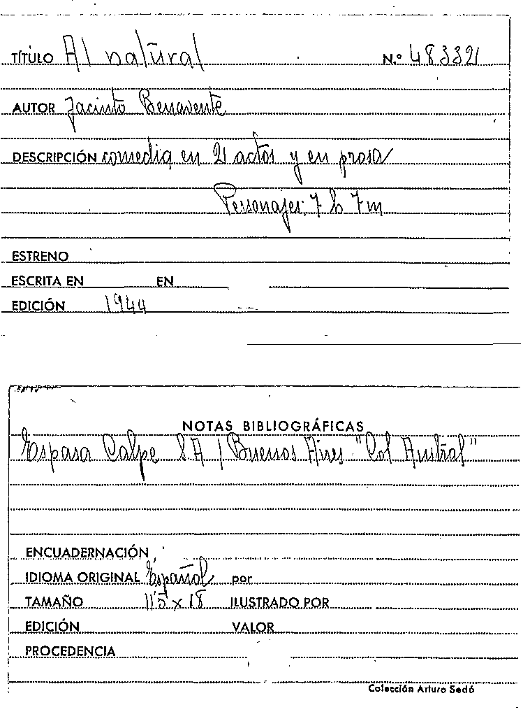 Al natural / Jacinto Benavente by Series: Colección austral