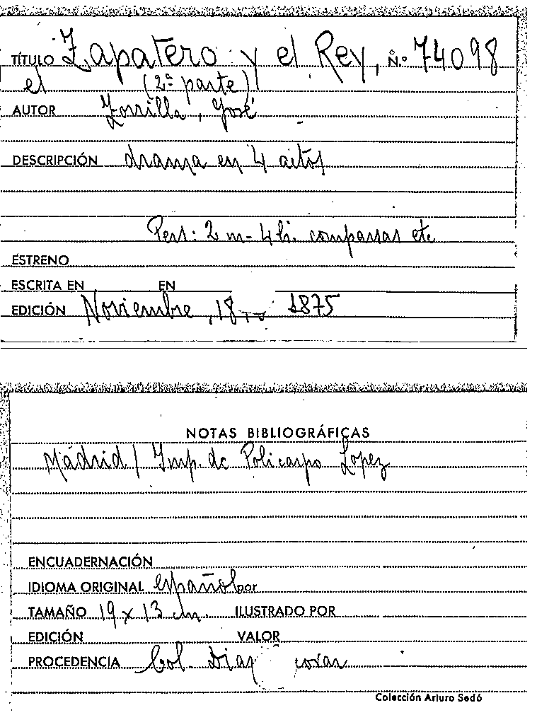 El Zapatero y el Rey / José Zorrilla y Moral by