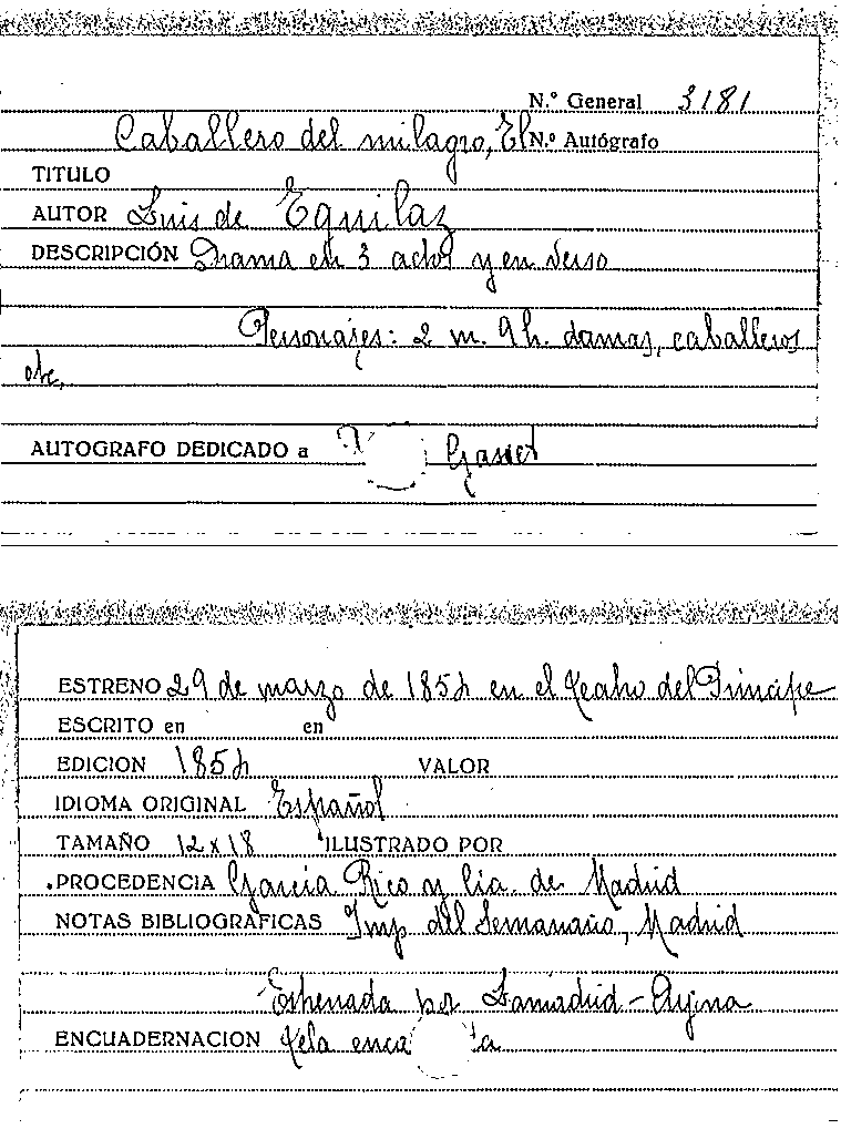 El Caballero del milagro : drama original, en tres actos y en verso / por D. Luis de Eguilaz by