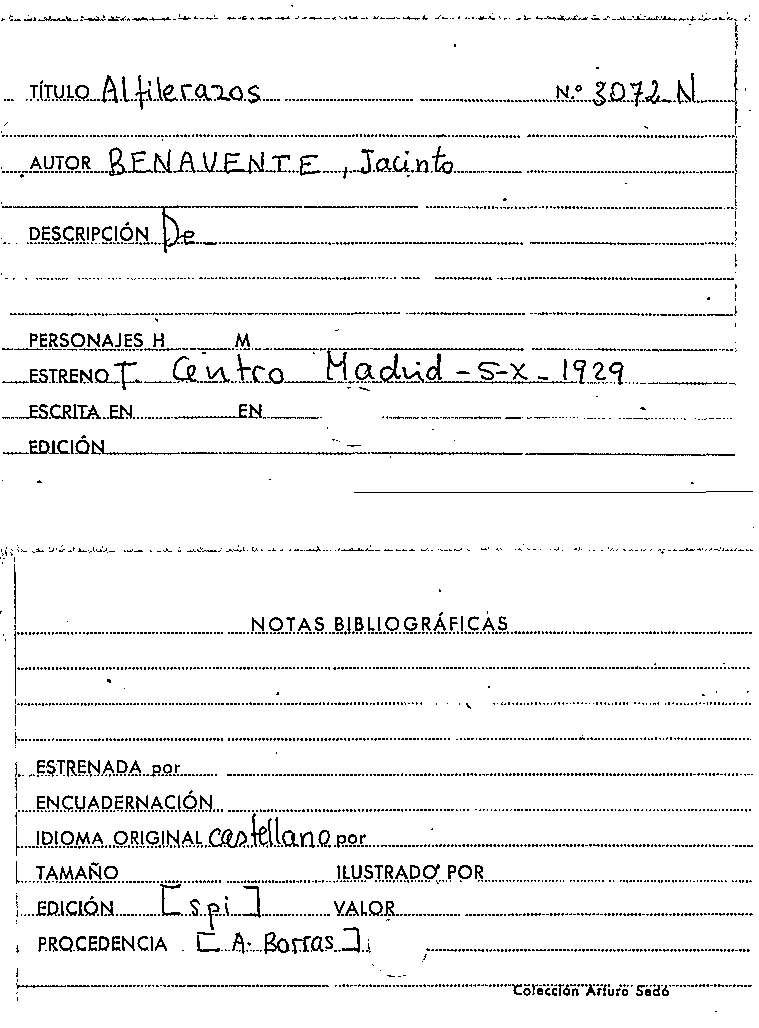 Alfilerazos / Jacinto Benavente by