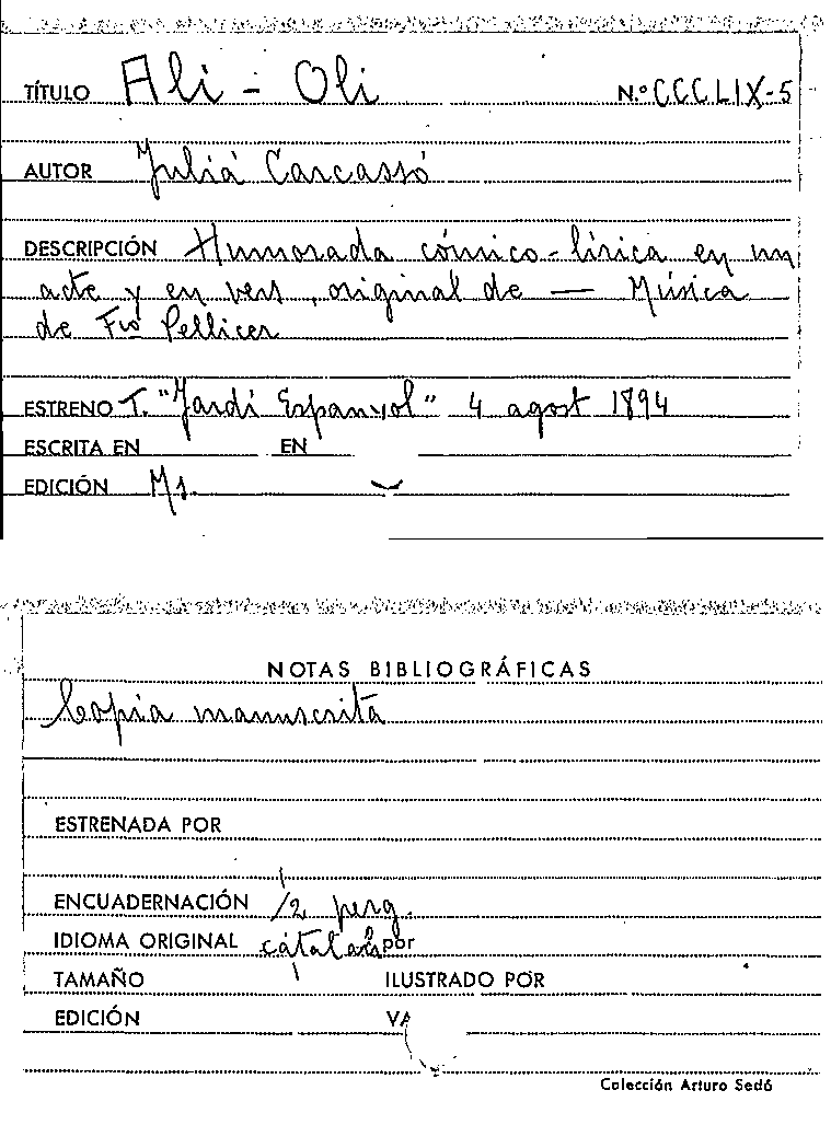 Ali-Oli [Manuscrit] / Julián Carcassó by