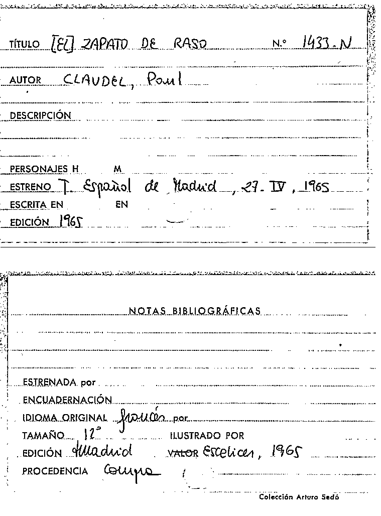 El Zapato de raso / original de Paul Claudel ; versión de Antonio Gala ; música de Arthur Honnegger by Series: Colección teatro (1951) ; 480