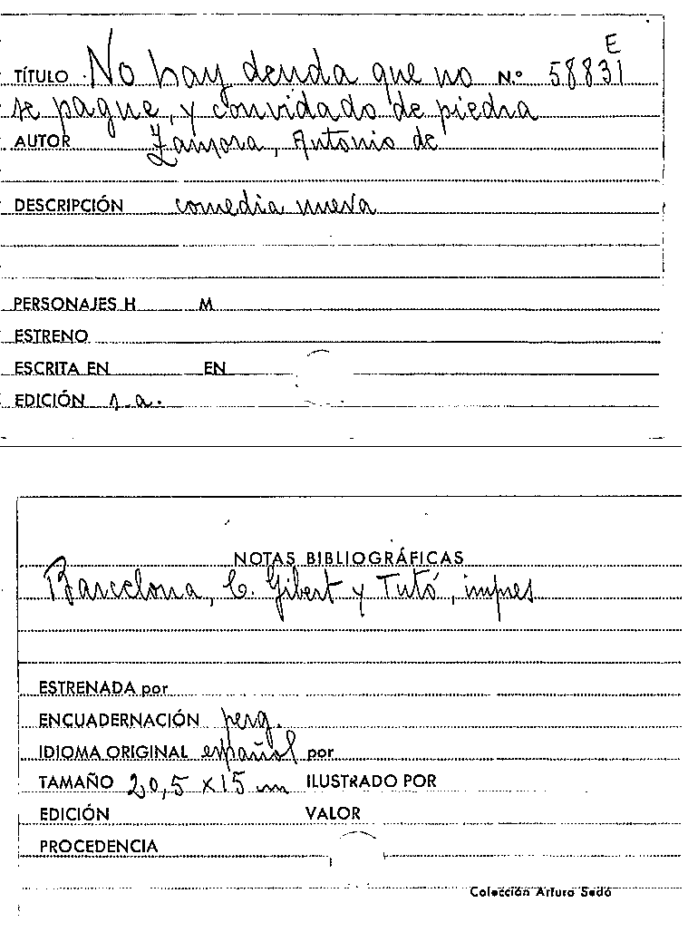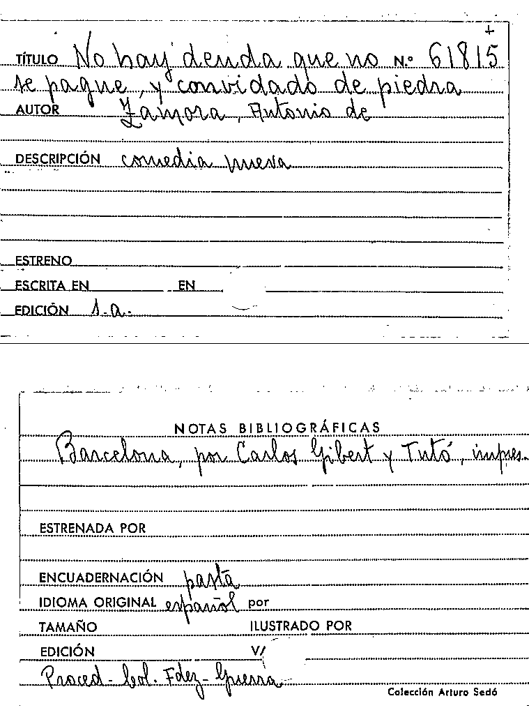 No hay deuda que no se pague, y, Convidado de piedra / Antonio de Zamora by