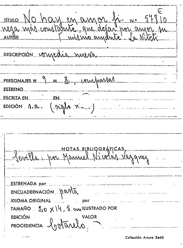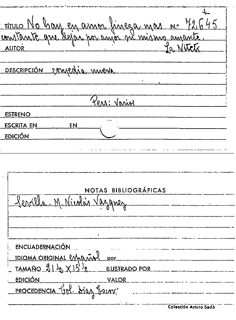 No hay en amor fineza más constante que dejar por amor su mismo amante / Niteti by