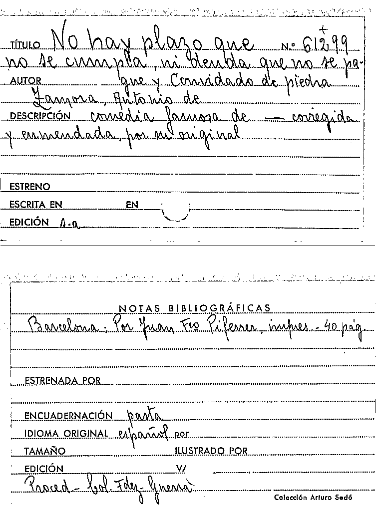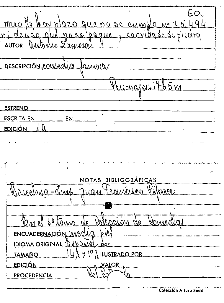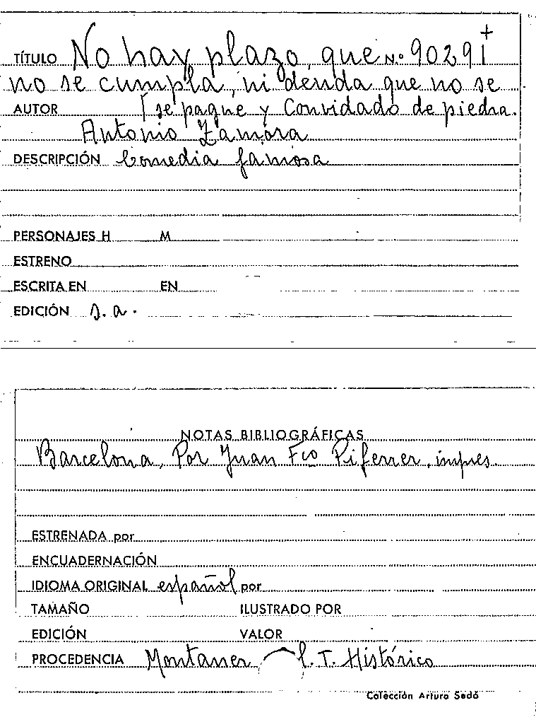 No hay plazo que no se cumpla ni deuda que no se pague, y, Convidado de piedra / Antonio de Zamora by