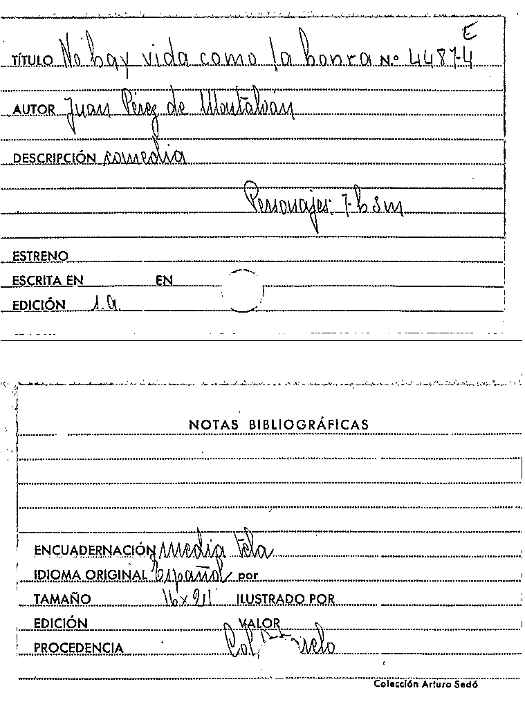 No hay vida como la honra / Juan Pérez de Montalbán by