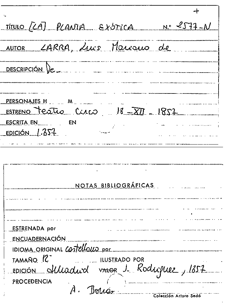 La planta exótica : comedia en tres actos y en verso / original de Luis Mariano de Larra by