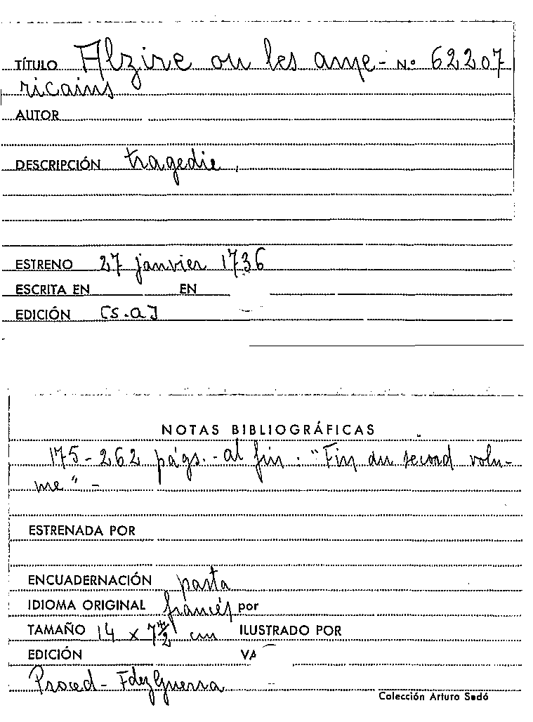 Alzire ou les americains / Anónimo by