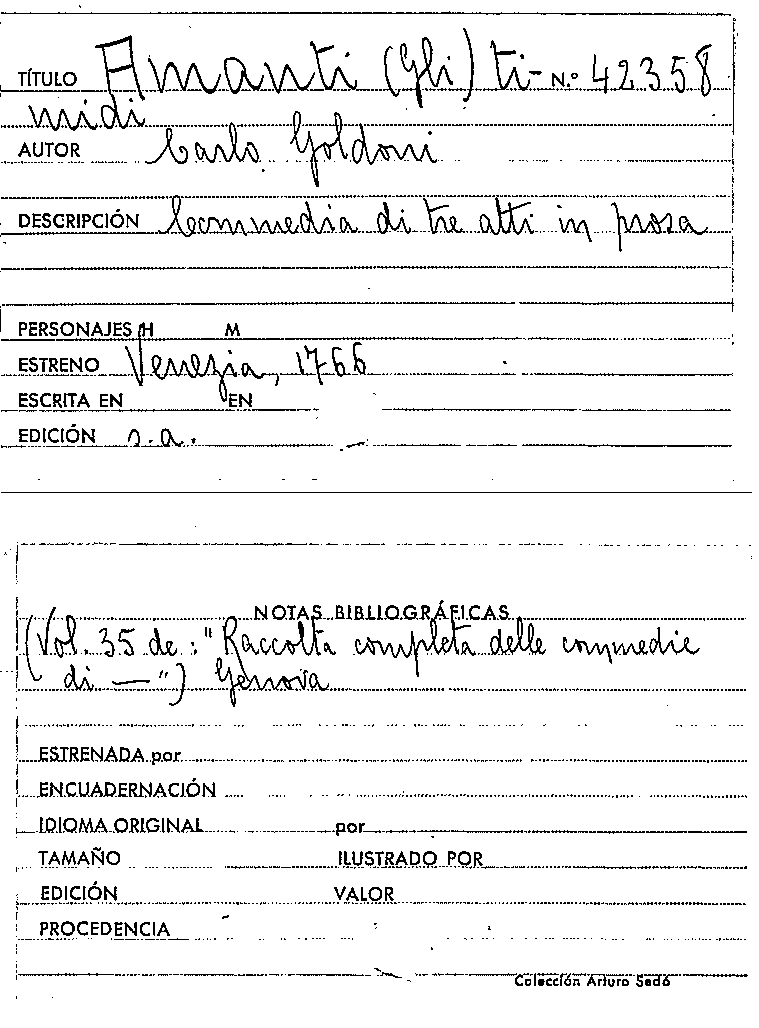 Gli Amanti timidi / Carlo Goldoni by