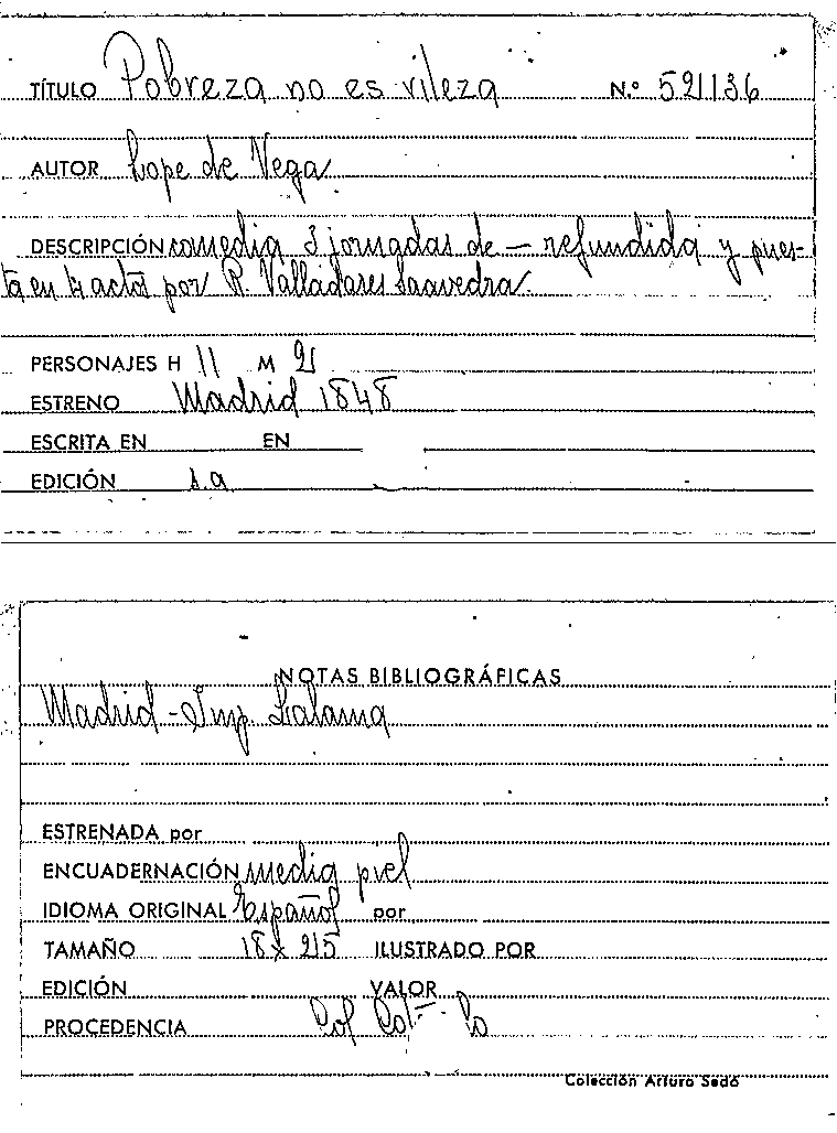 Pobreza no es vileza / Lope de Vega by