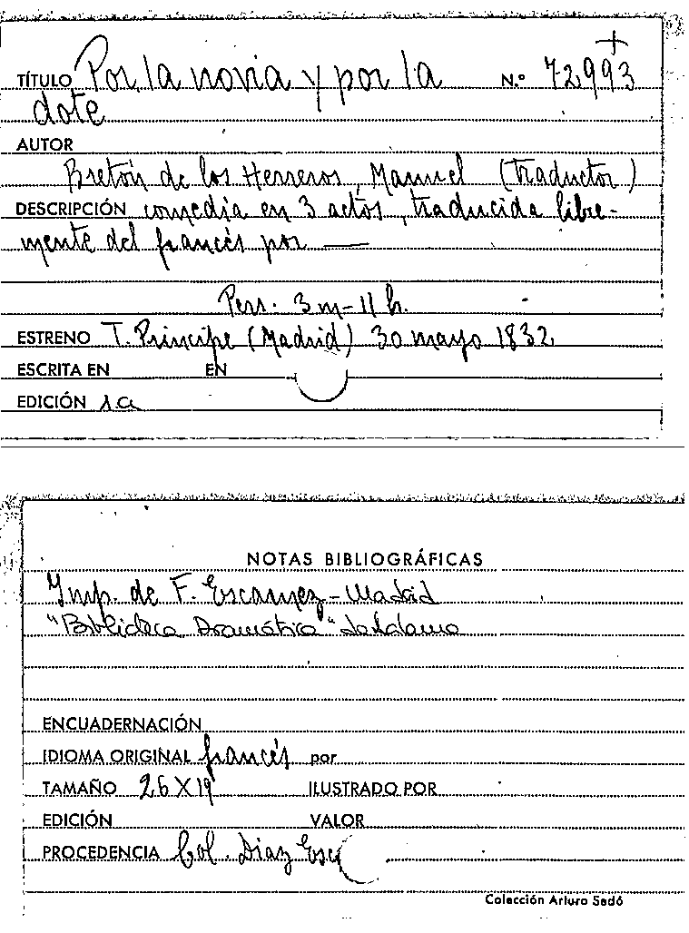 Por la novia y por la dote / Manuel Bretón de los Herreros by