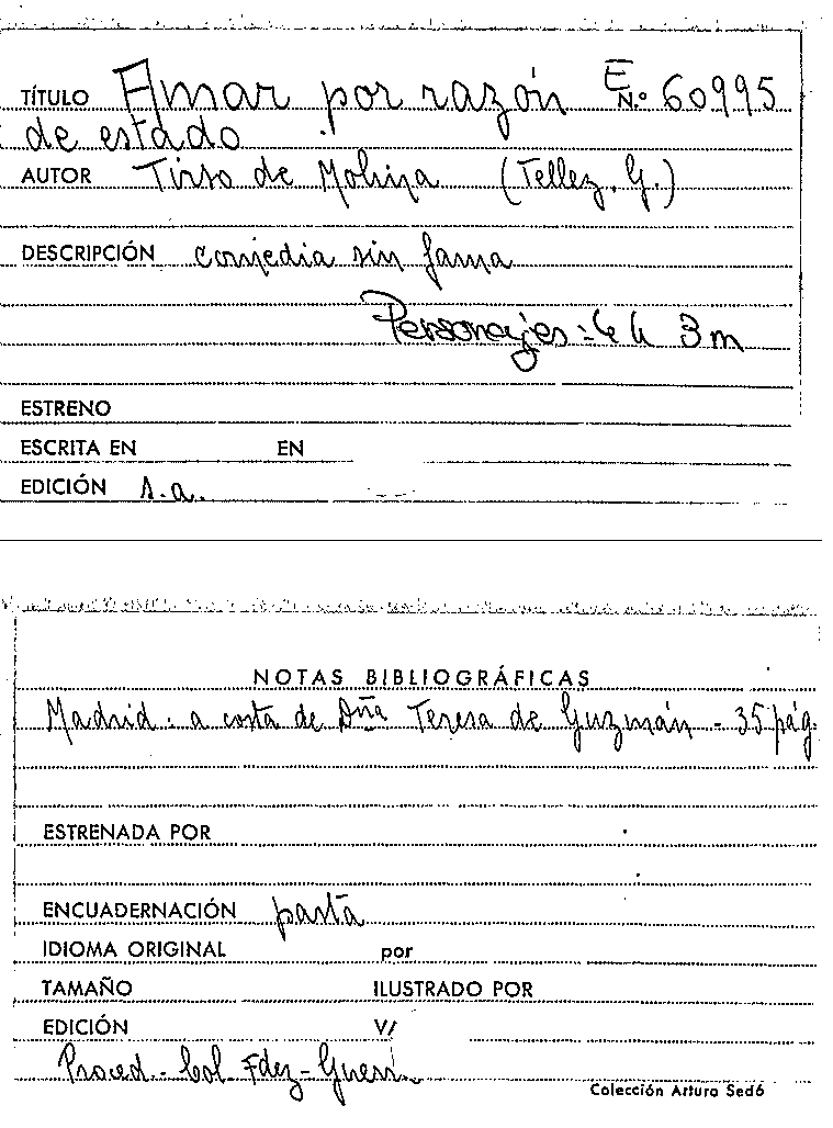 Amar por razón de estado / Tirso de Molina by