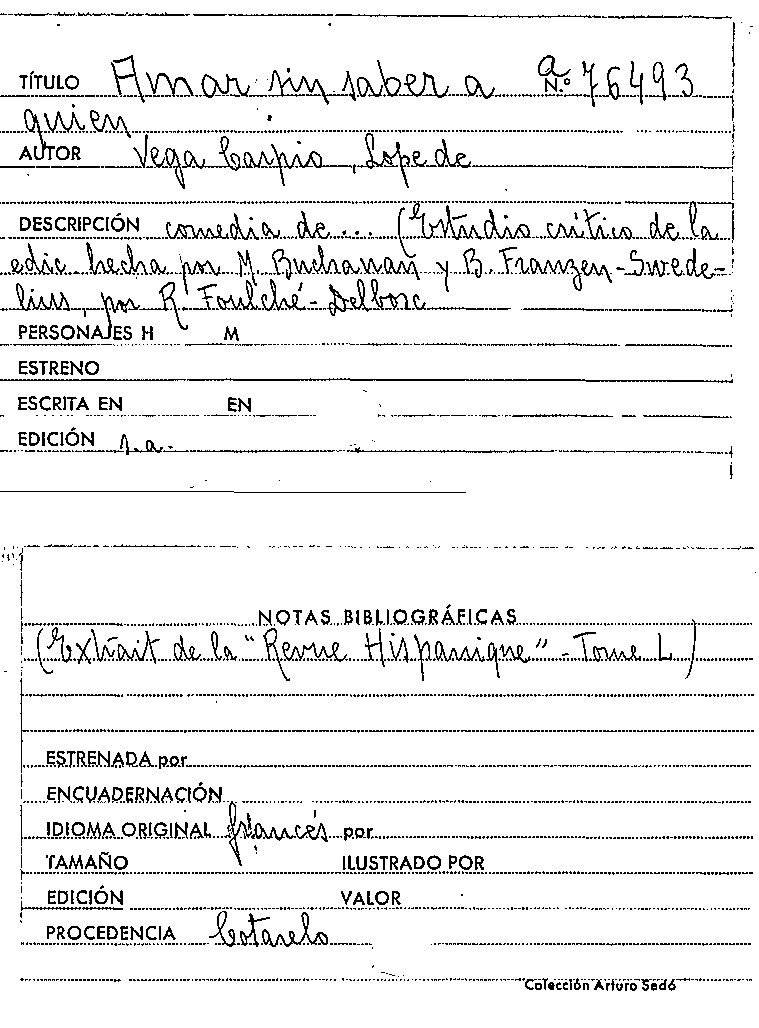 Amar sin saber a quien / Lope de Vega by